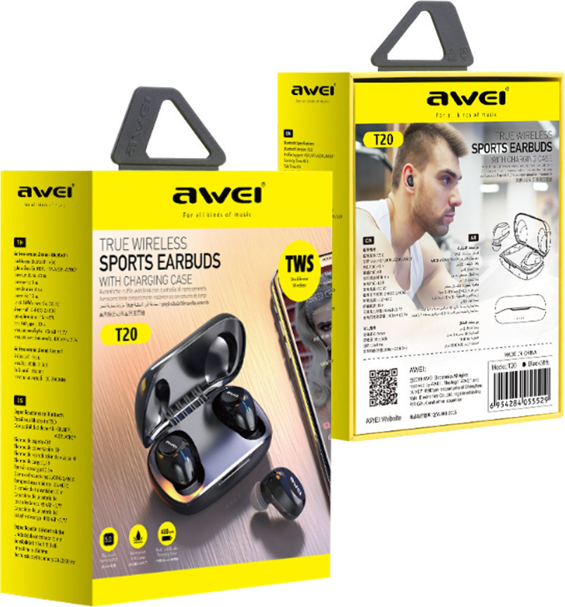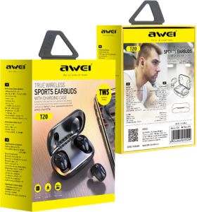 Awei T20 In-ear Bluetooth Handsfree Ακουστικά με Αντοχή στον Ιδρώτα και Θήκη Φόρτισης Μαύρα