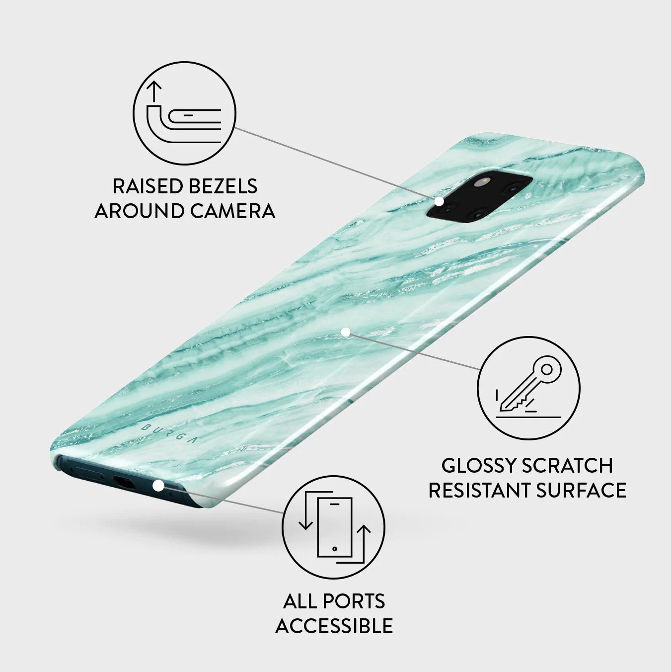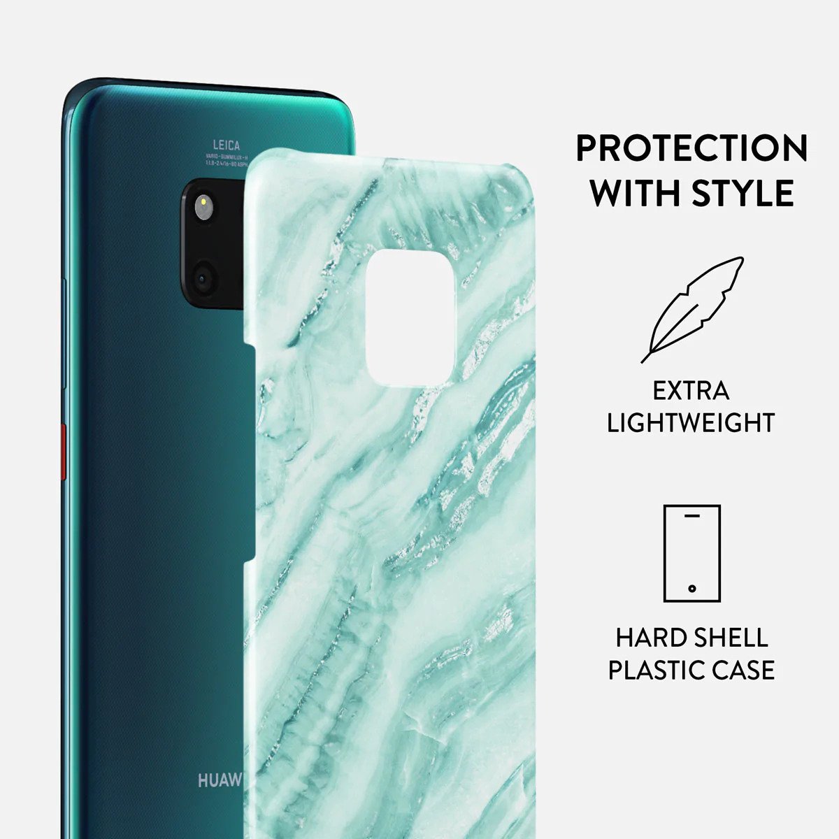 Add freshness to your style with our Fresh Breeze Huawei Mate 20 Pro phone case. The soft cyan color of the case is emphasized in a unique marble pattern. Do not let the softness of the color deceive you; the case still offers heavy-duty protection for your cellphone.