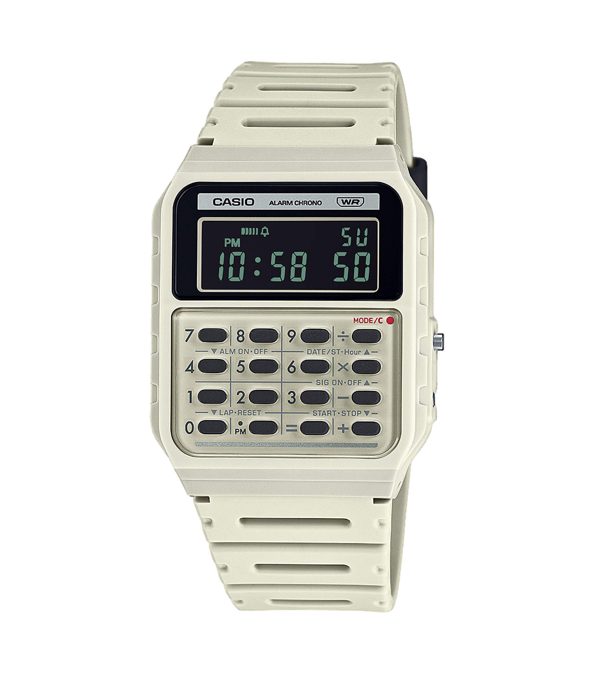 | • Αριθμομηχανή 8 ψηφίων • Λειτουργία επιλογής δεύτερης χρονικής ζώνης • Χρονόμετρο – 1/100 δευτ. – 24 ώρες • Ημερήσιο ηχητικό σήμα • Αυτόματο ημερολόγιο • 12/24-ωρη ένδειξη της ώρας • Ακρυλικό γυαλί • Κάσα από καουτσούκ • Λουράκι από βιώσιμο καουτσούκ • Λουράκι με τοκά • 5 έτη - 1 μπαταρία • Ταξινόμηση αντοχής στο νερό (WR) σύμφωνα με ISO 2281 |