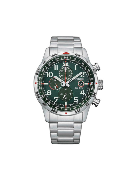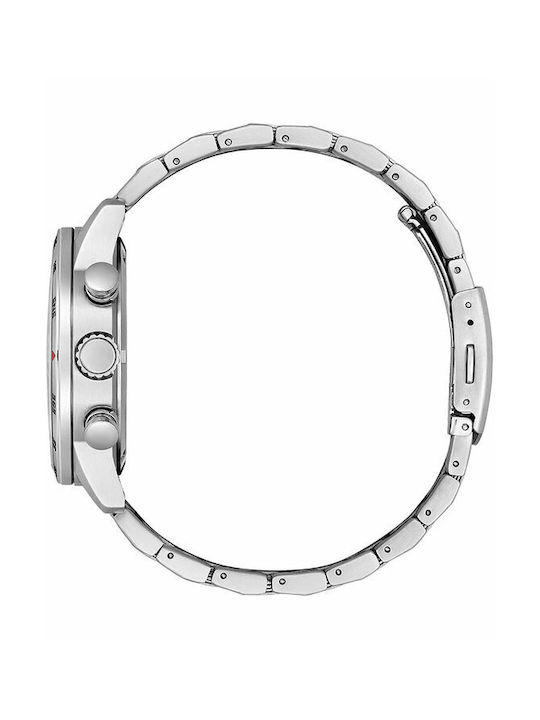 Ανδρικό αναλογικό ρολόι χρονογράφος της εταιρίας Citizen με μεταλλικό μπρασελέ σε ασημί χρώμα. Διαθέτει μηχανισμό eco-drive που μετατρέπει οποιοδήποτε είδος φωτός σε ενέργεια, η οποία τροφοδοτεί το ρολόι. Με πλήρη φόρτιση λειτουργεί για μήνες ακόμη και στο σκοτάδι, χωρίς να απαιτείται τακτική αντικατάσταση της μπαταρίας.