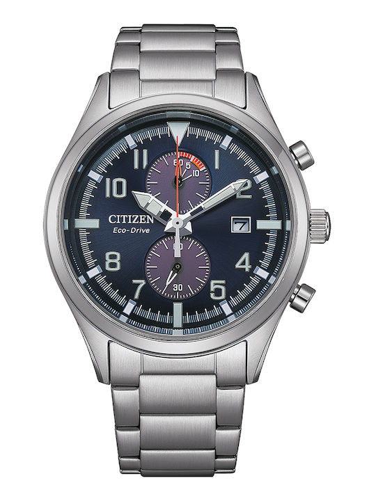Ανδρικό ρολόι ηλιακής ενέργειας της εταιρείας Citizen με ασημί μεταλλικό μπρασελέ.