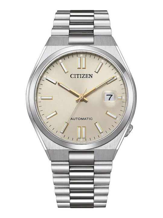 CITIZEN NJ0151-88W Tsuyosa Automatic από ανοξείδωτο ατσάλι με μπεζ καντράν και ασημί μπρασελέ.