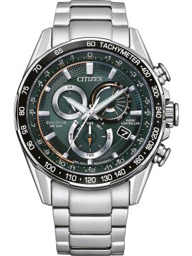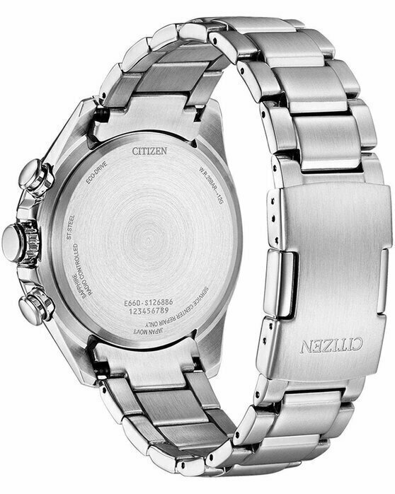 Ρολόι Eco-Drive Radio Controlled της Citizen με κάσα 43χλμ. από ασημί ανοξείδωτο ατσάλι και μαύρο καντράν anti-reflective κρύσταλλο ζαφείρι.