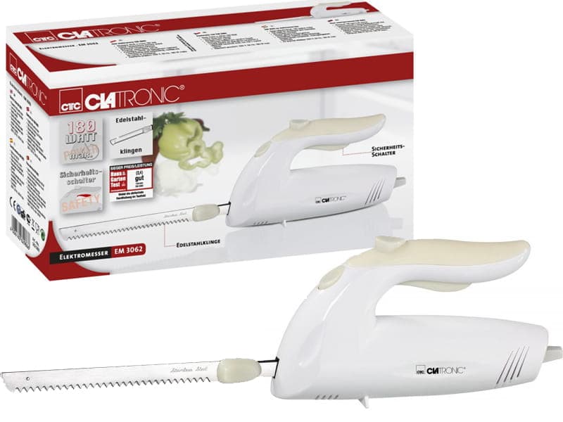 The powerful EM 3062 electric knife from Clatronic is ideal for everyday use. Cut bread, roasts, pies or even frozen food according to your needs. The appliance is particularly low-noise and low-vibration - for pleasant and quiet handling.
