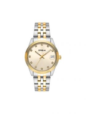 DAS.4 Γυναικείο Αναλογικό Ρολόι 2031101061, με σαμπανί χρώμα καντράν, διαμανταρισμένης επεξεργασίας κάσα και δίχρωμο μπρασελέ από ανοξείδωτο ατσάλι με κίτρινο χρυσό επιμετάλλωση. Οι ενδείξεις της ώρα απεικονίζονται με λευκά ζιργκόν, ενώ υπάρχει ξεχωριστή ένδειξη της Ημερομηνίας, DAS.4.