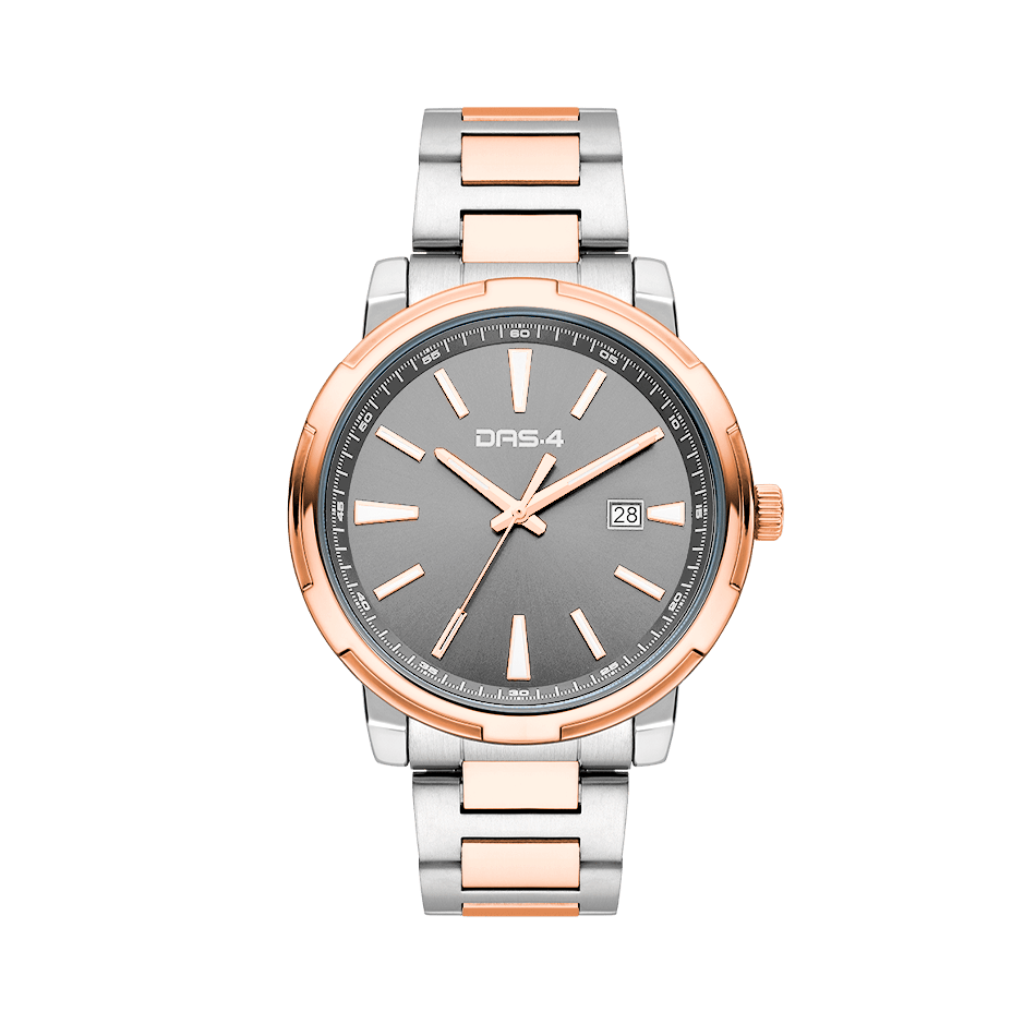 DAS.4 Ανδρικό Αναλογικό Ρολόι 2031350371, με γκρι χρώμα καντράν και δίχρωμο μπρασελέ από ανοξείδωτο ατσάλι σε ροζ χρυσό επιμετάλλωση, DAS.4.