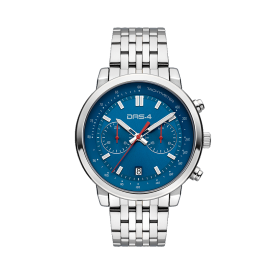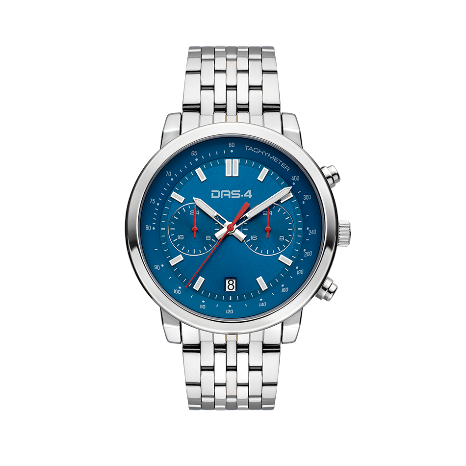DAS.4 Ανδρικό Αναλογικό Ρολόι 2031350482, με μπλε χρώμα καντράν και μπρασελέ από ανοξείδωτο ατσάλι σε ασημί χρώμα. Στο εσωτερικό μέρος του καντράν υπάρχουν ξεχωριστές ενδείξεις Ημέρας και 24ωρης ώρας με κόκκινες λεπτομέρειες, DAS.4.