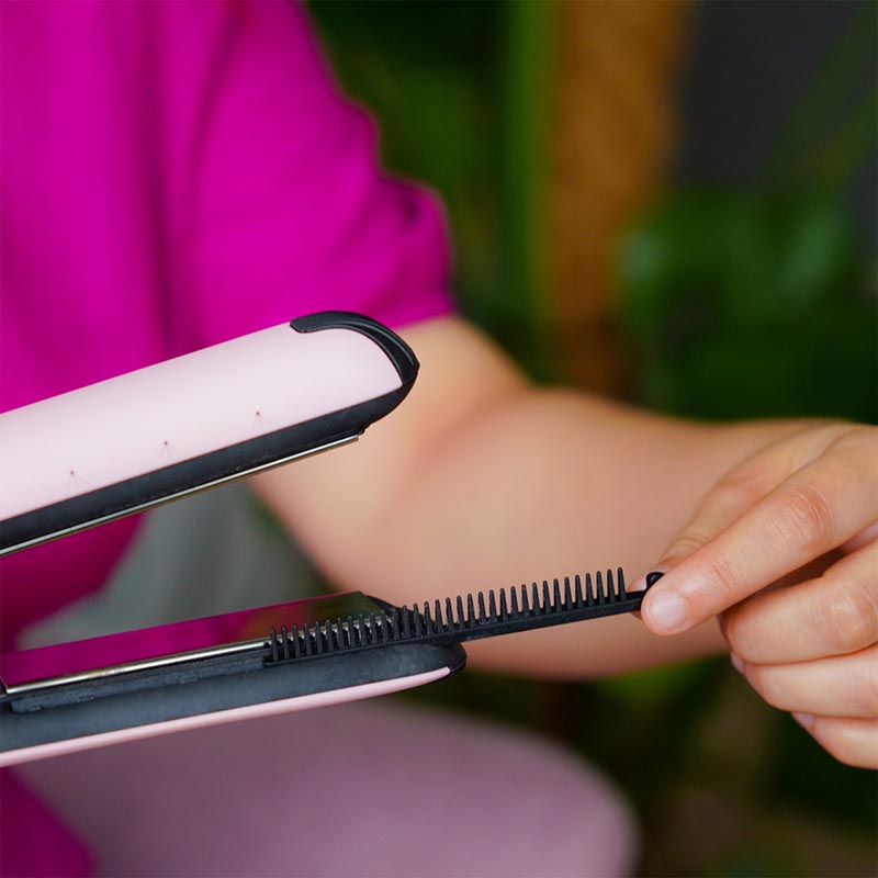 •  Αντιθερμική άκρη και ειδικό, αντιολισθητικό μαξιλαράκι στη λαβή για μέγιστη προστασία κατά το styling.