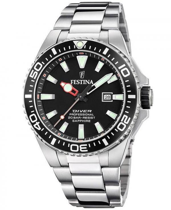 Festina Diver Professional με ημερομηνία και ασημί μπρασελέ F20663/3
