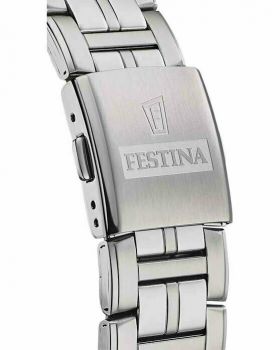 Ανδρικό ρολόι χρονογράφος της εταιρίας Festina. Διαθέτει μηχανισμό μπαταρίας, ο οποίος βασίζεται στην ηλεκτρική ενέργεια που παρέχει η μπαταρία, με αποτέλεσμα να υπάρχει ακρίβεια και αντοχή. Είναι ανθεκτικό στο νερό έως 100 μέτρα και είναι ιδανικό για κολύμπι (10 atm).