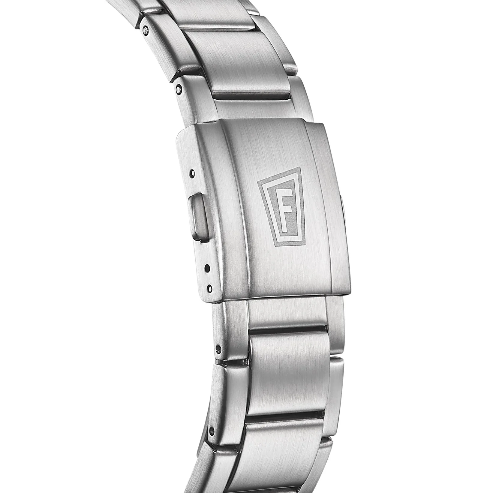 Ανδρικό ρολόι χρονογράφος της εταιρίας Festina, μεγάλου μεγέθους με μεταλλικό μπρασελέ σε ασημί χρώμα. Διαθέτει μηχανισμό μπαταρίας, ο οποίος βασίζεται στην ηλεκτρική ενέργεια που παρέχει η μπαταρία, με αποτέλεσμα να υπάρχει ακρίβεια και αντοχή.