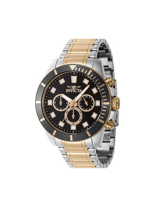 Ανδρικό Αναλογικό, Αναλογικό ρολόι χρονογράφος της εταιρίας Invicta με μεταλλικό μπρασελέ σε χρυσό χρώμα. Διαθέτει μηχανισμό μπαταρίας, ο οποίος βασίζεται στην ηλεκτρική ενέργεια που παρέχει η μπαταρία, με αποτέλεσμα να υπάρχει ακρίβεια και αντοχή.
