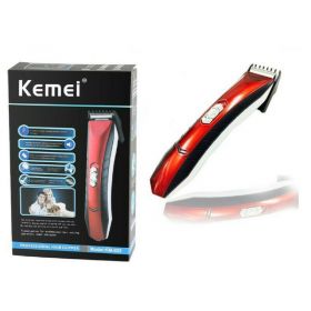 Κουρευτική μηχανή της εταιρίας Kemei, κατάλληλη για χρήση σε περιοχές όπως τα μαλλιά, τα γενιά και το σώμα. Λειτουργεί με μπαταρία, ενώ απαιτούνται 7 ώρες για μια πλήρη φόρτιση, η οποία παρέχει έως και 30 λεπτά αυτονομίας.