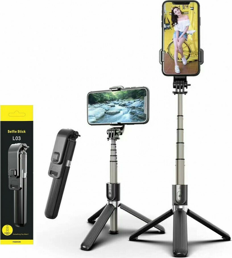 L03 Selfie Stick Τρίποδο Κινητού με Bluetooth Μαύρο