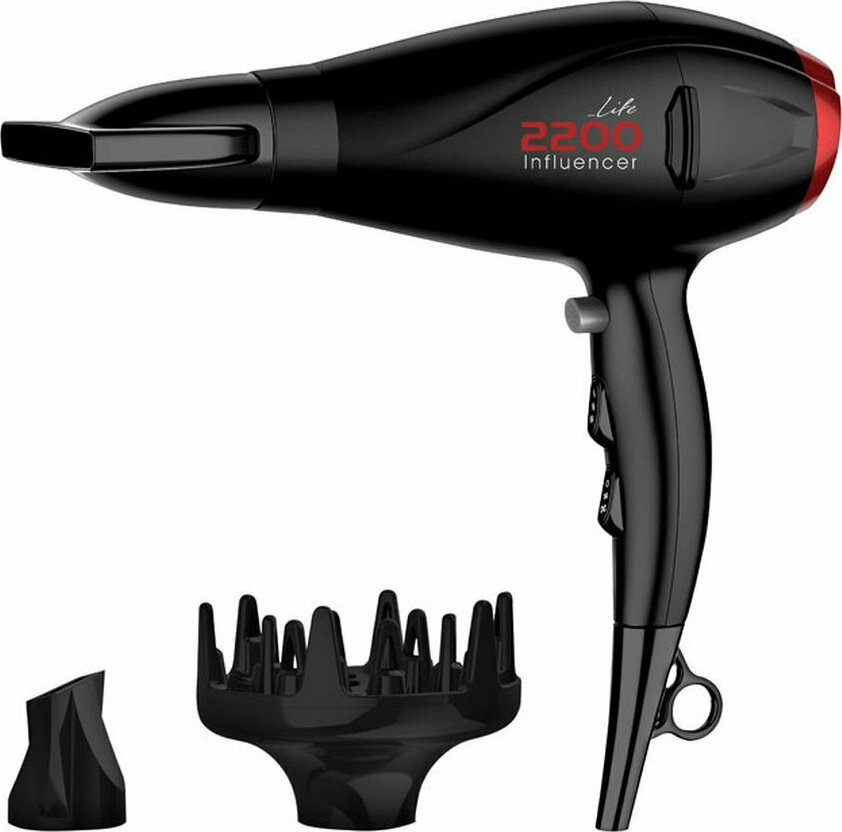 Το σεσουάρ LIFE Influencer με το μοντέρνο και κομψό design, αποτελεί ιδανική επιλογή για κάθε χρήστη. Το δυνατό AC μοτέρ των 2200W, δημιουργεί μία εξαιρετικά ισχυρή ροή αέρα κάνοντας το στέγνωμα και το φορμάρισμα των μαλλιών σας εύκολο και γρήγορο. Τα αποσπώμενα ακροφύσια καλύπτουν κάθε ανάγκη, καθώς περιλαμβάνονται Slim στόμιο για ιδανικό ίσιωμα, στόμιο για γρήγορο και εύκολο στέγνωμα και φυσούνα για δημιουργικό φορμάρισμα και έξτρα όγκο!
