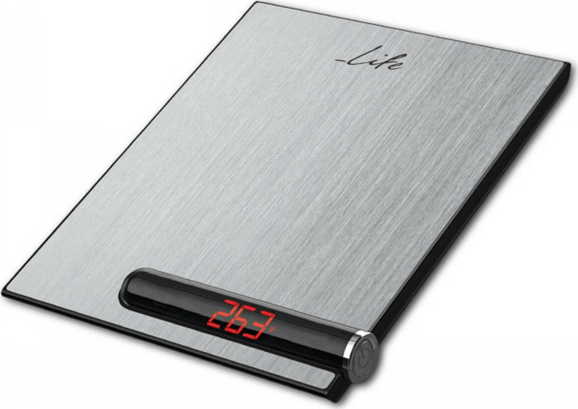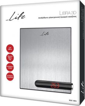 Η ηλεκτρονική ζυγαριά κουζίνας LIFE LIBRA 3D έχει κομψό σχεδιασμό και μεγάλη επιφάνεια από ανοξείδωτο ατσάλι. Η μοντέρνου σχεδιασμού και υψηλής ποιότητας οθόνη LCD, διαθέτει ψηφιακή ένδειξη βάρους με μεγάλα και ευανάγνωστα κόκκινα LED ψηφία. Διαθέτει λειτουργία απόβαρου για να εμφανίζει το καθαρό βάρος των τροφίμων, χωρίς το βάρος του δοχείου στο οποίο τα έχετε τοποθετήσει. Επιπλέον, οι 4 αισθητήρες υψηλής ανάλυσης που διαθέτει, προσφέρουν μετρήσεις με ακριβή αποτελέσματα, ενώ η λειτουργία αυτόματης απενεργοποίησης αυξάνει τη διάρκεια ζωής των μπαταριών.