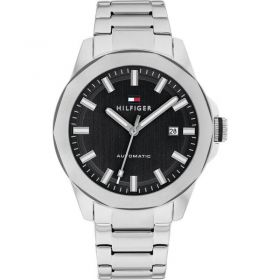 Aνδρικό ρολόι Tommy Hilfiger Automatic από ανοξείδωτο ατσάλι με μαύρο καντράν και ασημί μπρασελέ.