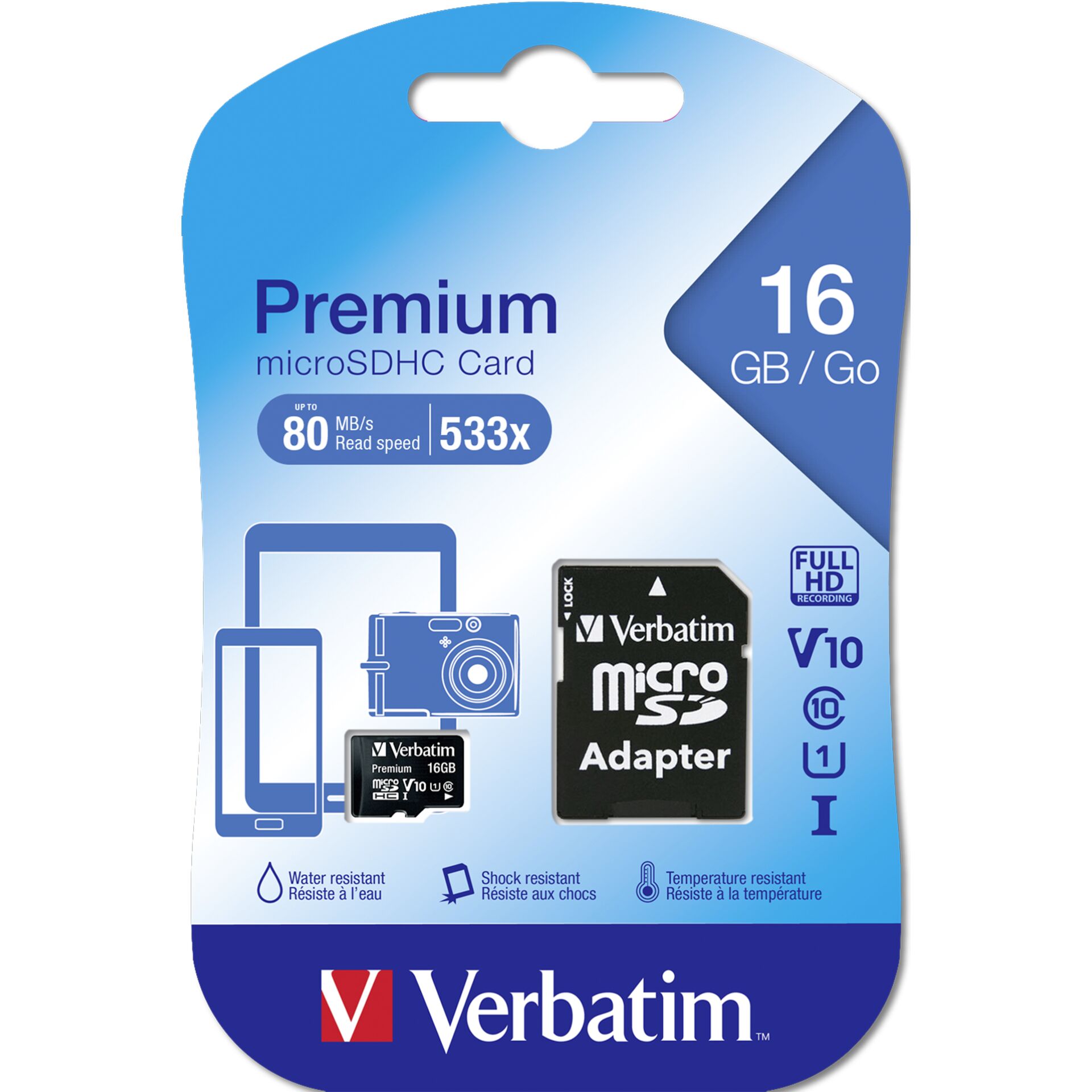 Verbatim microSDHC 16GB Class 10 UHS-I incl Adapt. 44082