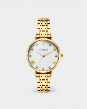 Το μοντέλο Bliss επιστρέφει σε ανανεωμένη έκδοση με φρέσκο χαρακτήρα. Το New Bliss διαθέτει εντυπωσιακά καντράν σε ποικίλες χρωματικές αποχρώσεις από φίλντισι,που αντανακλά το φως με διακριτική πολυτέλεια. Οι λαμπερές πέτρες zircon και οι ρωμαϊκοί αριθμοί στις θέσεις 12, 4 και 8 προσθέτουν κομψότητα στο σχεδιασμό. Ιδανικό για γυναίκες που αγαπούν τα διακριτικά statement κομμάτια, VOGUE.