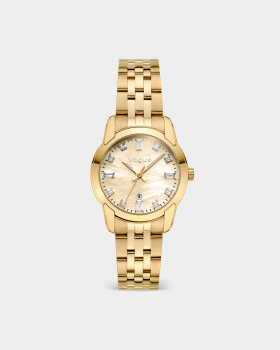Η σειρά “Lydia” παίζει με το φως και τη γεωμετρία. Το καντράν από φίλντισι δημιουργεί φυσικές αντανακλάσεις, ενώ οι πέτρες στις ενδείξεις της ώρας μετατρέπουν τη λειτουργικότητα σε καθαρό design στοιχείο. Η στρογγυλή κάσα και οι ισορροπημένες αναλογίες συνθέτουν ένα ρολόι με σύγχρονο χαρακτήρα, που ξεχωρίζει για την ακρίβεια του σχεδιασμού του, VOGUE.