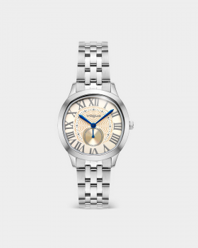 Η σειρά “Yvonne” εκφράζει τη σύγχρονη κομψότητα μέσα από clean γραμμές και urban αισθητική. Ο στρογγυλός σχεδιασμός της κάσας, το statement καντράν με τους λατινικούς αριθμούς και τις μεταλλικές αποχρώσεις δημιουργούν ένα ρολόι που αναβαθμίζει κάθε look. Διατίθεται σε 2 εκδοχές, με πέτρες στο στεφάνι και χωρίς, ώστε να προσαρμόζεται σε κάθε στυλ, VOGUE.